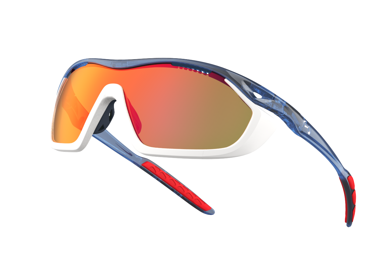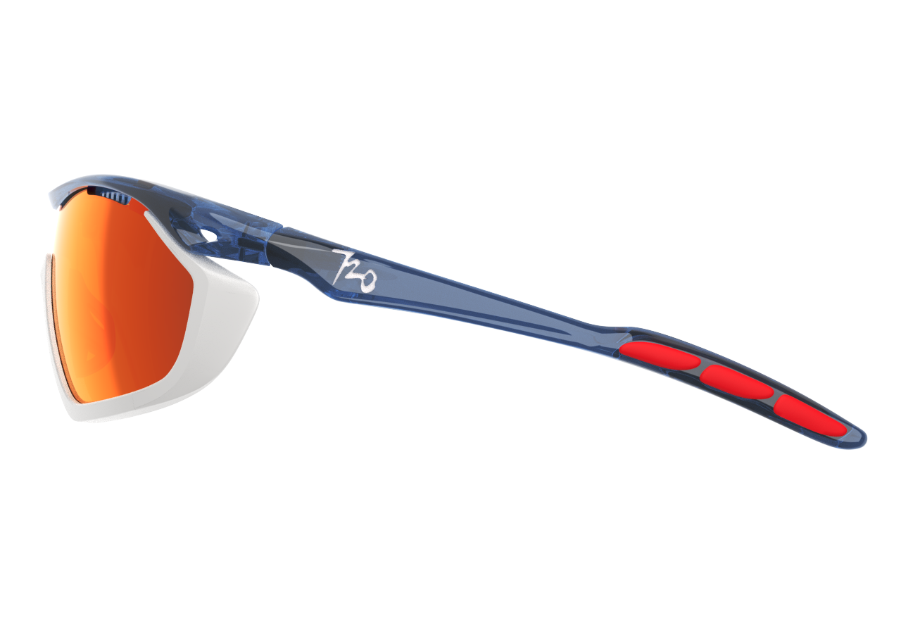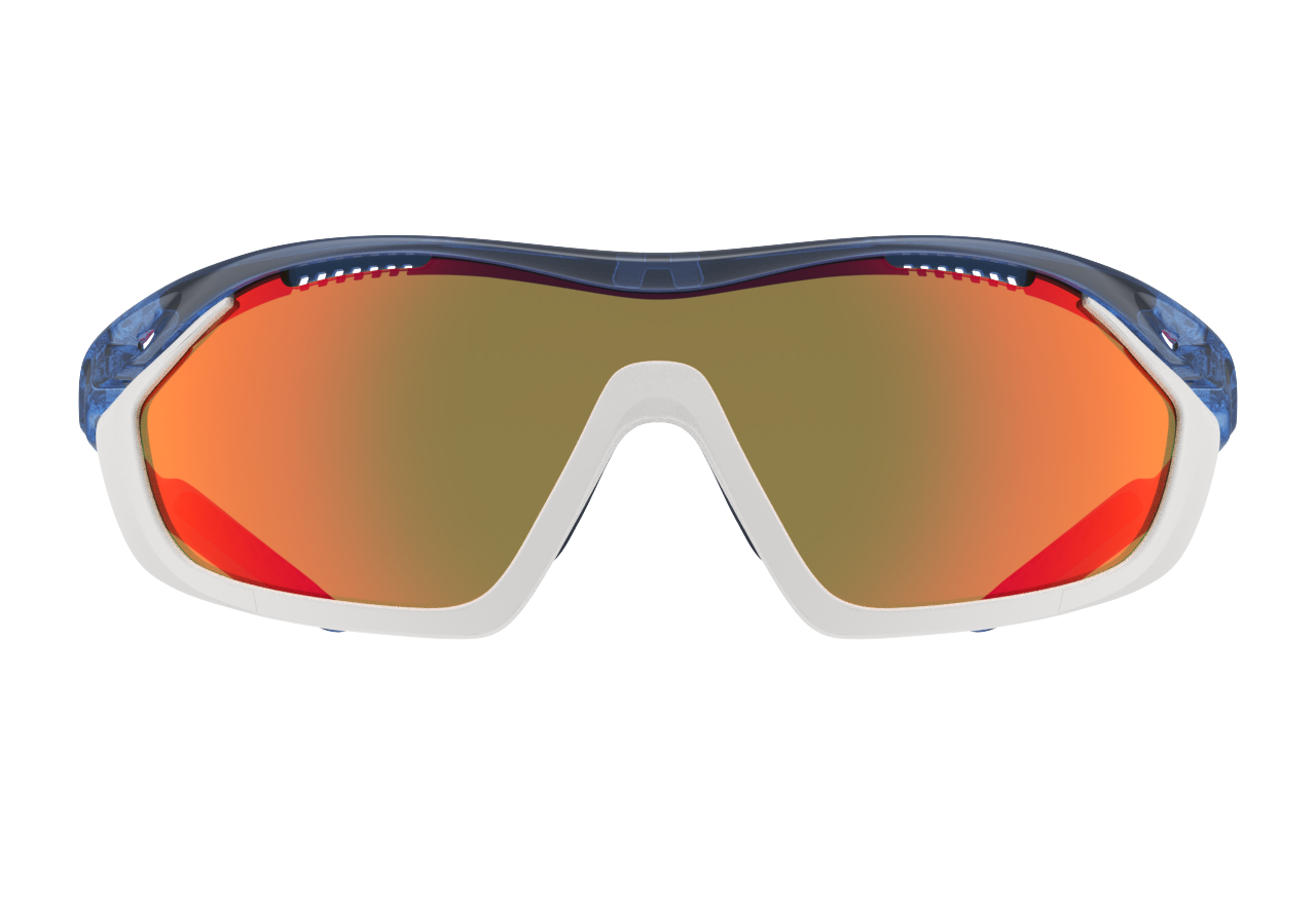 Analog Pro / Translucent Midnight Blue Temple / Matte White Gasket / HC Red Black Lens. Спортивные солнцезащитные очки Analog Pro от бренда 720armour подойдут как для бега, езды на велосипеде, триатлона и различных видов отдыха, так и в качестве повседневных городских очков. За счет системы Wrap Fit - профессиональной спортивной кривизне, оправа очков Analog Pro соответствует естественным изгибам лица благодаря чему достигается удобная и надежная посадка оправы на лице. Такая облегающая конструкция помогает уменьшить визуальное искажение, выравнивая оптическую ось линз с линией зрения. Она эффективно устраняет такие проблемы, как периферическая размытость или косой астигматизм, вызванные преломлением света под углом. Система Wrap Fit обеспечивает надежную и удобную посадку очков, сохраняя четкость зрения даже при быстрых движениях или интенсивных занятиях спортом. Материал оправы Arkema G850: оправа из французского пластика на биологической основе BioGreen Arkema G850 содержит 45% биологического сырья и обладает повышенной химической стойкостью, является сверхлегкой, эластичной и антиаллергенной, удобной в ношении и устойчивой к высоким нагрузкам. По сравнению с традиционным процессом производства пластмасс на основе нефтехимии биопластик Arkema G850 снижает выбросы углерода более чем на 46%, удаляя при этом бисфенол А (BPA), что делает его нетоксичным, экологически чистым и устойчивым для Земли. ErgoGrip System: противоскользящие, гипоаллергенные, амортизирующие дужки, дизайн заушников AriBag и регулируемые носовые упоры надежно фиксируют оправу на голове и предотвращают ее соскальзывание. Они обеспечивают удобное и длительное ношение, одновременно снижая удары и давление, предотвращая деформацию оправы. Для регулировки осторожно сожмите или раздвиньте носоупоры одновременно с обеих сторон. CVS (Compressed Venting System): революционная система вентиляции использует инновационные вытяжные отверстия на линзах и/или оправе, чтобы обеспечить лучший поток воздуха, предотвращая запотевание и сохраняя четкое зрение. 3D-Fitting Design: регулируемая трехступенчатая конструкция дужек на шарнирах с поворотом на 10 градусов позволяет подобрать оптимальный угол посадки оправы для глаз/ушей/носа. Необходимо настроить один раз (не менять положение многократно после первичной настройки). Double Impact lenses: ударопрочные сферические линзы обработаны той же технологией силиконовой кристаллической пленки (SiO2), которая используется в конструкции самолетов и пуленепробиваемых окон для двойной защиты от ударов. Сверхтонкие, легкие и гибкие, они полностью блокируют ультрафиолетовые лучи и защищают от ударов на высокой и низкой скорости. MaxView: большая монолинза для расширения обзора, усиливающая периферийное зрение более чем на 20%. HiColor: революционная технология, созданная для защиты ваших глаз. Снижает зрительное напряжение, улучшает восприятие цвета и его глубины, благодаря повышенной контрастности и чёткости линз. Передовая технология линз отфильтровывает вредные лучи HEV420 (видимый свет высокой энергии), которые со временем могут вызвать повреждение сетчатки. Оптика: Степень защиты: 100% защита от UV (УФ-излучения) и HEV420 (видимого света высокой энергии). Затемнение: 3 категория (светопропускание 8-18%). Материал линз: Поликарбонат. HiColor (высокая контрастность линз). Покрытие линз: гидрофобное (водоотталкивающее), антибликовое, ударопрочное, с за