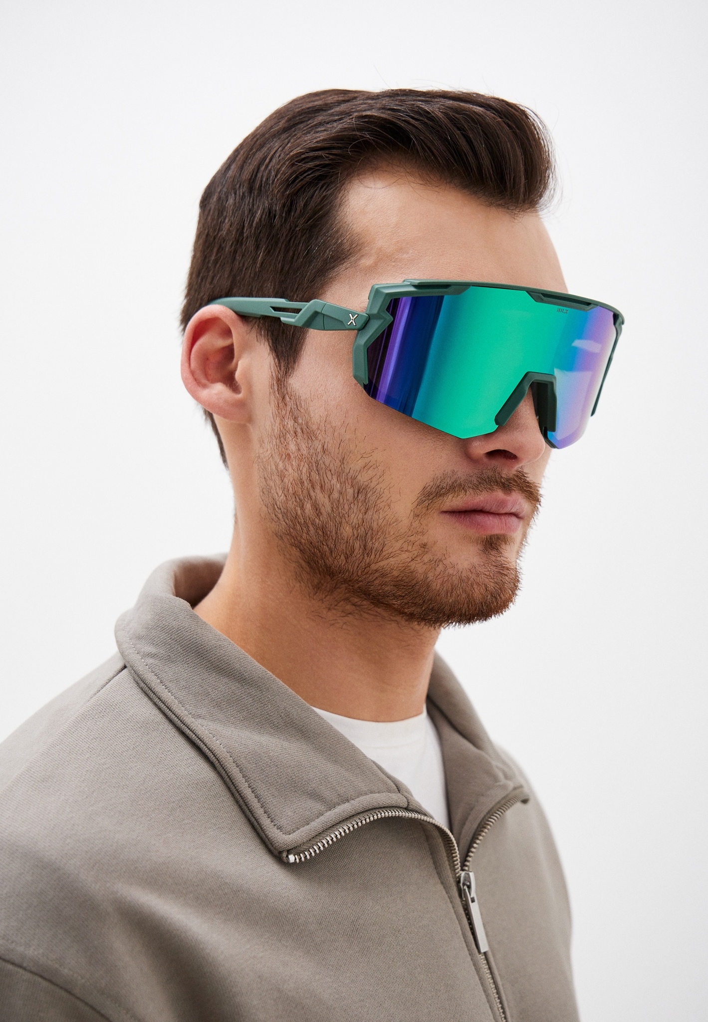 Спортивные очки с диоптриями HILX Samurai / Matt Solid Seaweed Green / Green Polarized Lens + Clear Lens.